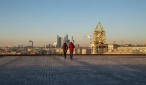 После этого полюбуемся вечерним городом со смотровой площадки на Воробьевых Горах (стадион «Лужники», небоскрёбы